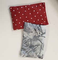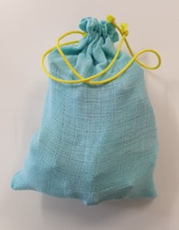 16 petits coussins colorés (12/8cm) contenant des matières différentes (sable, riz, ouate, boutons, etc.). On peut les assembler 2 par 2 en les manipulant.