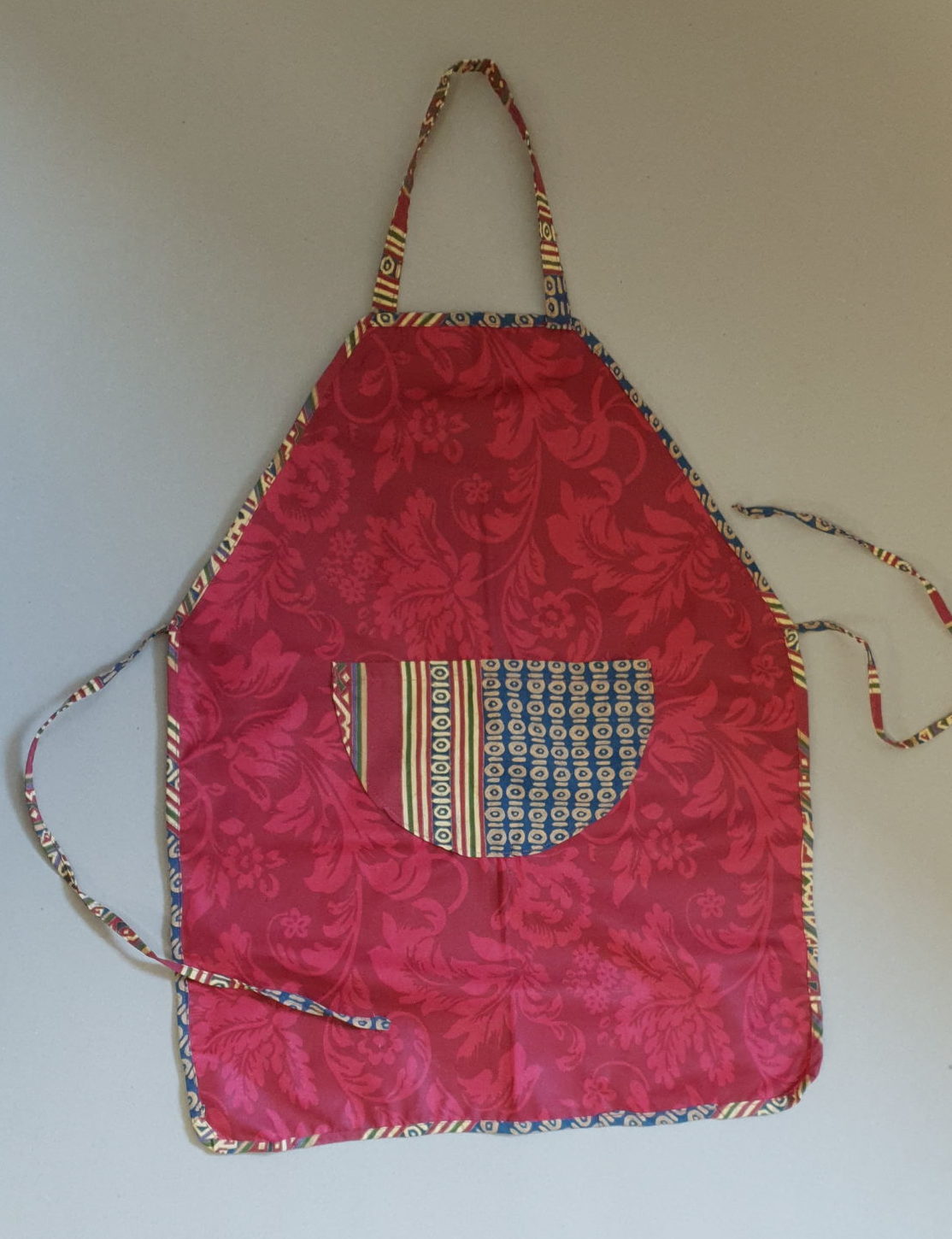 Tablier croisant dans le dos et fermé sur les épaules par une pression. Toile imprégnée doublure en coton.