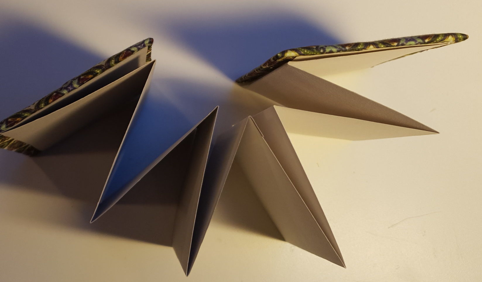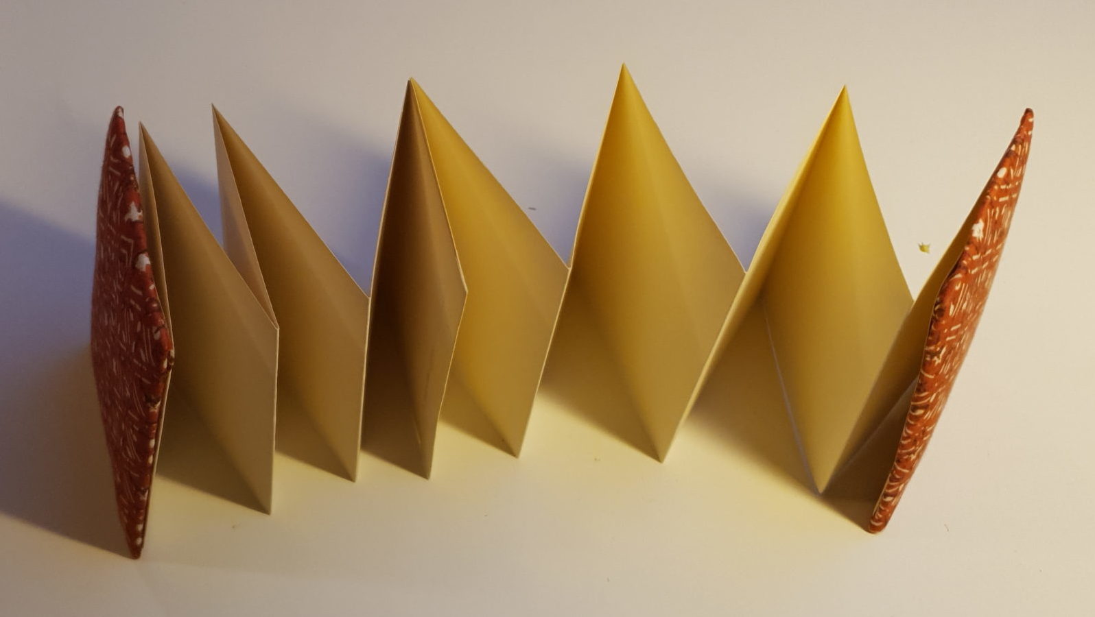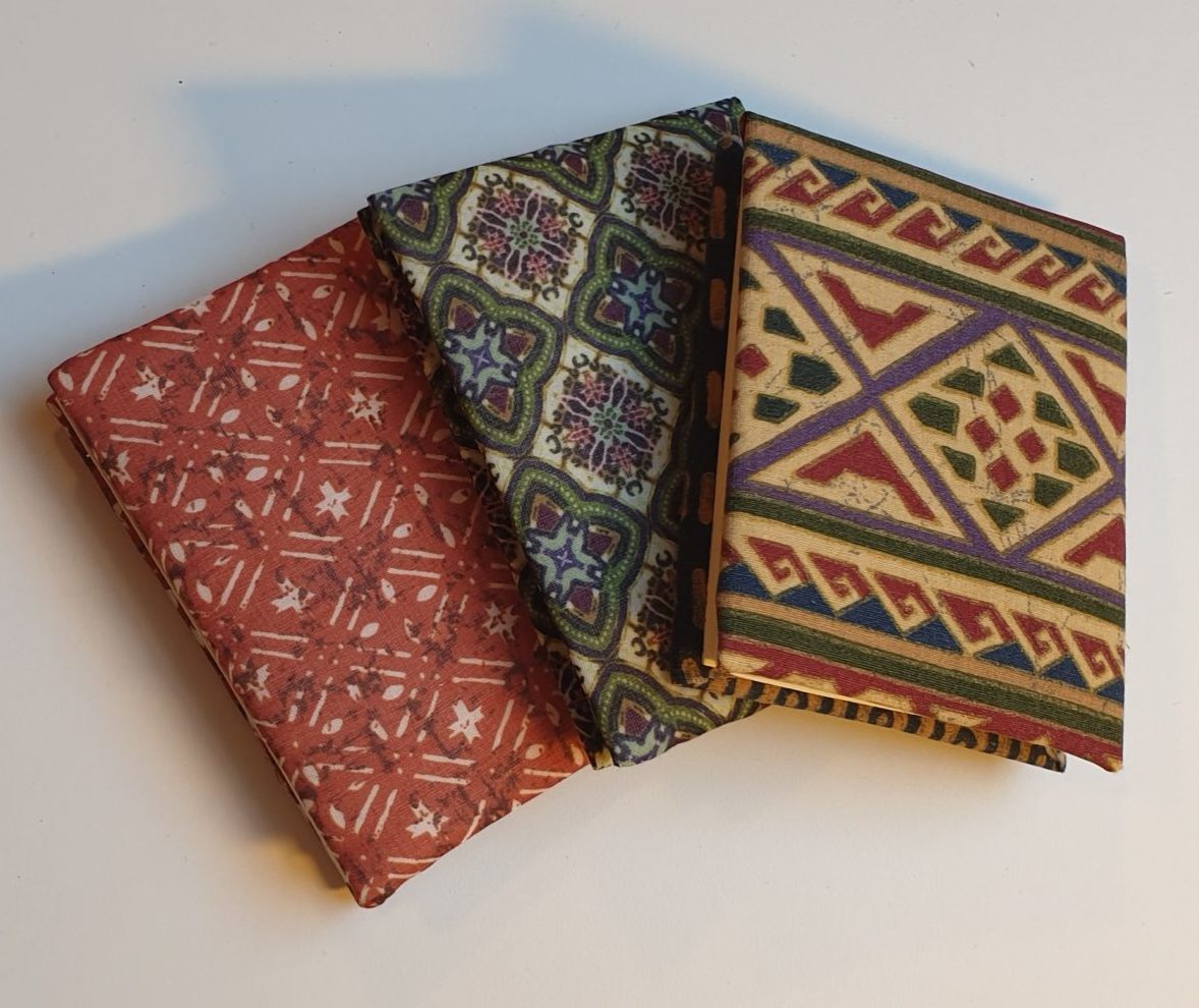 Trois petits albums en accordéon. Couvertures en tissu ouatiné. Pages cartonnées de différentes teintes.