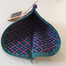 Trousse légère avec grande ouverture zippée. En coton dans les tons de bleu-vert, doublée.